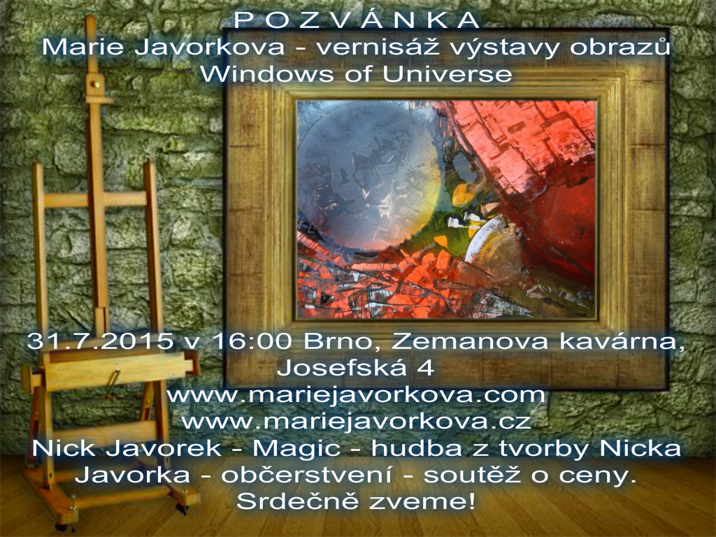 Vernisáž výstavy obrazů Windows of Universe 31.7.2015 v 16:00 Brno, Josefská 4